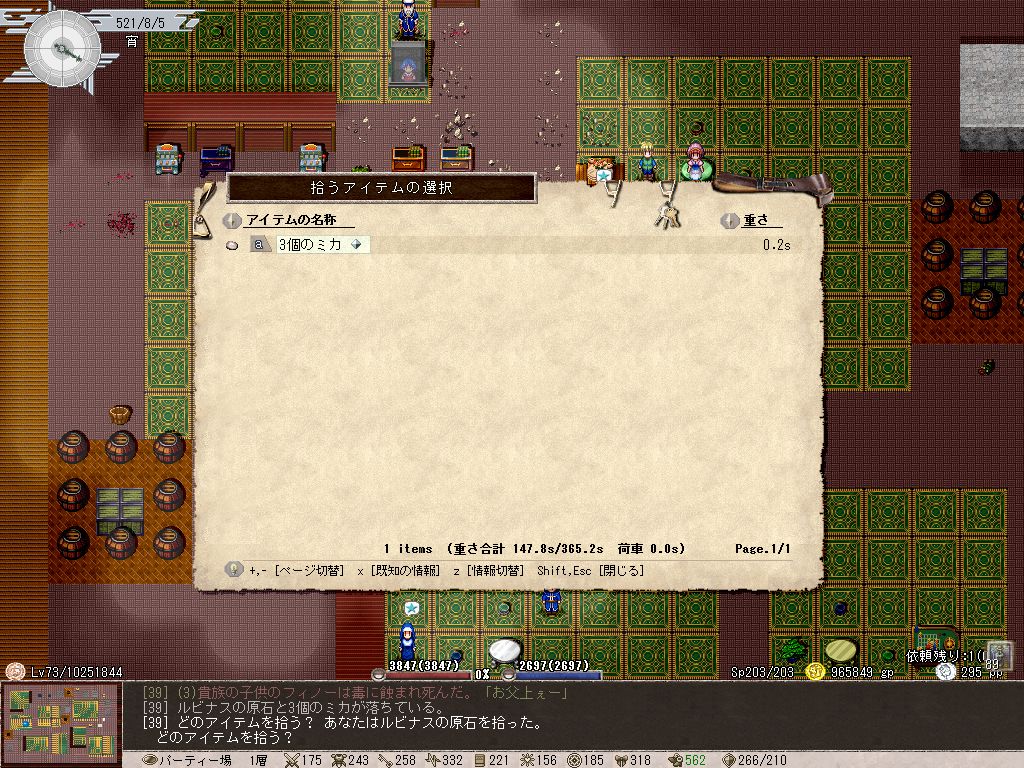 森タイプのネフィアを攻略中、視界を確保するために壁を掘り進んでいたらドングリというアイテムを入手。これはPlusにて追加されたもので、アピの実と同タイプの食料らしい。重量0.01sと超軽量で、100個所持していても1sにしかならないという超優良なアイテムなのだ。腹が減ったら調理してもいいし、ジュースにしてガブ飲みするのもいい。