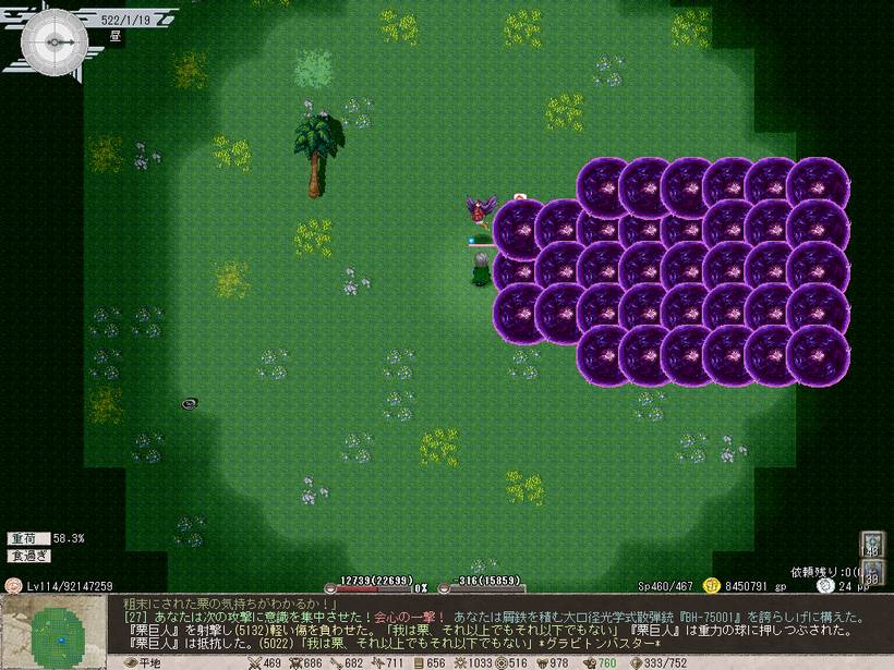 上の画像は栗巨人相手にグラビトンバスターが発動したところ。範囲攻撃&地形破壊効果があるようです。