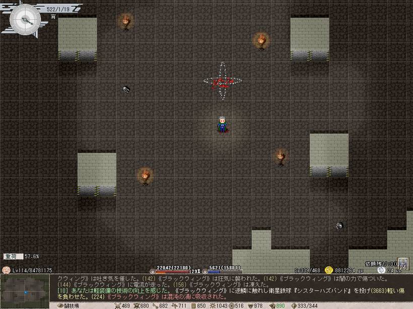 ダルフィのアリーナでブラックウィングのユニーク(レベルは失念…)を相手に実験。