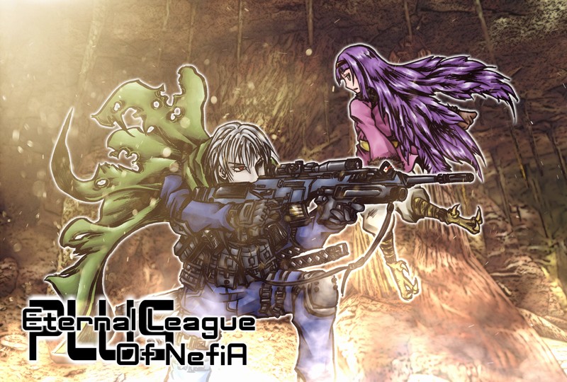 上のイラストは現在プレイ中のElona PlusのPCとペットのモー・ショボーです。ネフィア探索中というイメージで一つ。