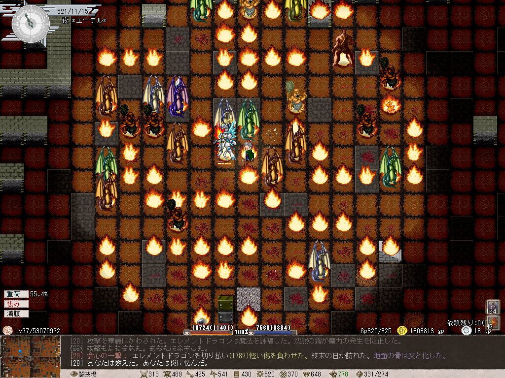 でもって炎燃え盛るなかドラゴン相手に戦ってたんですが、う~ん…意外と美味しくないな、これ。ブレスの嵐を耐えつつドラゴンどもを倒していくが、思ったほど宝箱や肉を落とさない。どっちかっていうと戦闘経験値目当ての行為なのか?