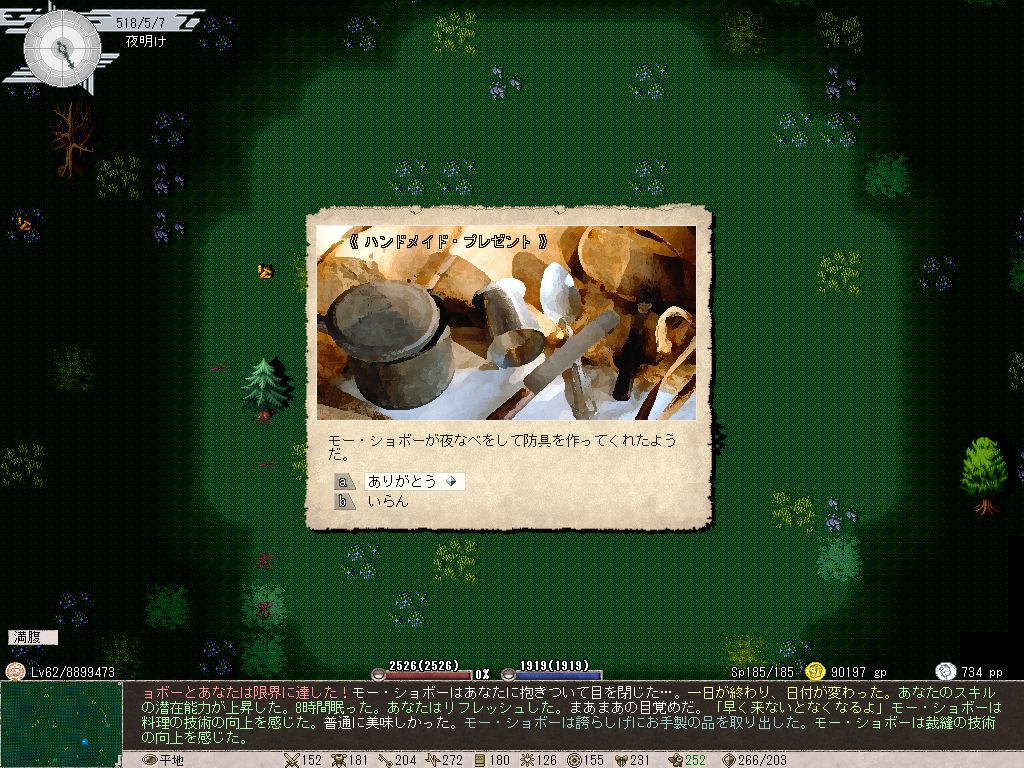 森タイプのネフィアの壁を破壊すると割と頻繁に入手できるので、とりあえず森を漁ってドングリ食ってれば生き残れるぜ!という、それなんていうCataclysm: DDAな状態に。