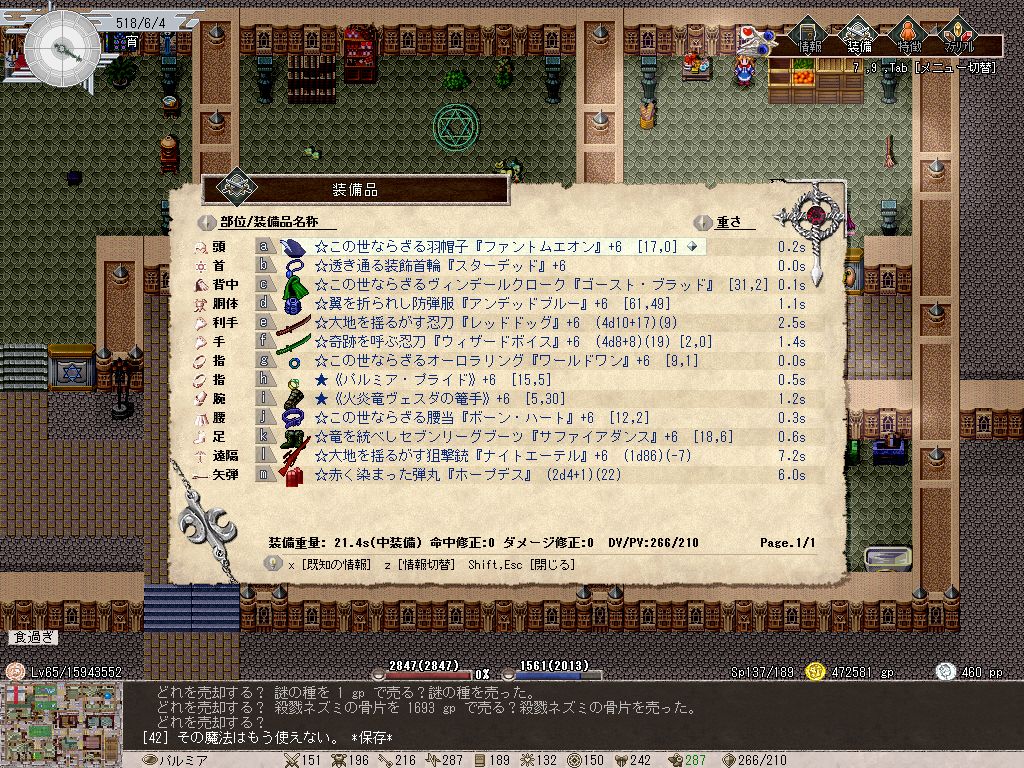 森タイプのネフィアを攻略中、視界を確保するために壁を掘り進んでいたらドングリというアイテムを入手。これはPlusにて追加されたもので、アピの実と同タイプの食料らしい。重量0.01sと超軽量で、100個所持していても1sにしかならないという超優良なアイテムなのだ。腹が減ったら調理してもいいし、ジュースにしてガブ飲みするのもいい。
