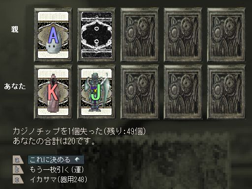 言うまでもなく、カジノに挑戦する場合は幸運の日(運+777)を狙ったほうが良いと思われます。