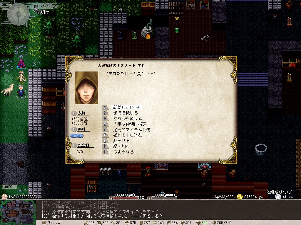 じつはゲーム開始直後あたりからダルフィで人狼騒ぎが発生しており、見るからに怪しい街がさらにキケんな雰囲気を醸すようになっている。