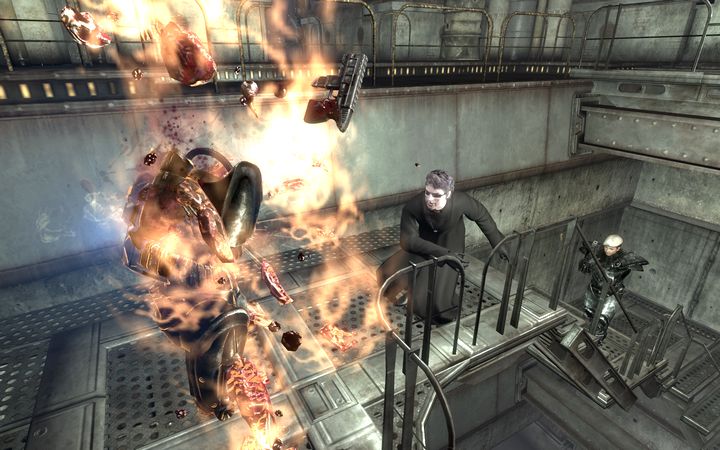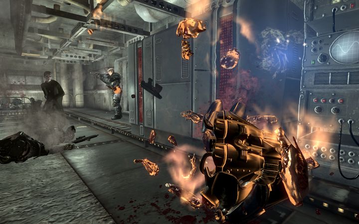ミニガンを放置し、そのへんに転がっていたアサルトライフルを手にした俺は、しばらく進んだ先に外界へと通じる扉を発見する。しかし。