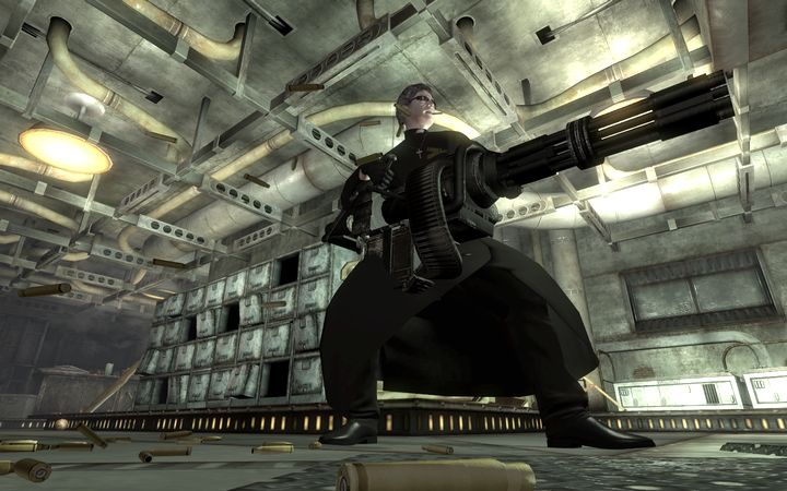 工事現場のドリルのような独特の銃撃音を鳴らし、多量の銃弾をあっという間に吐き出すミニガン。これだけの弾雨に晒されたとあっては、さすがのエンクレイブ製パワーアーマーも保たないようだ。
