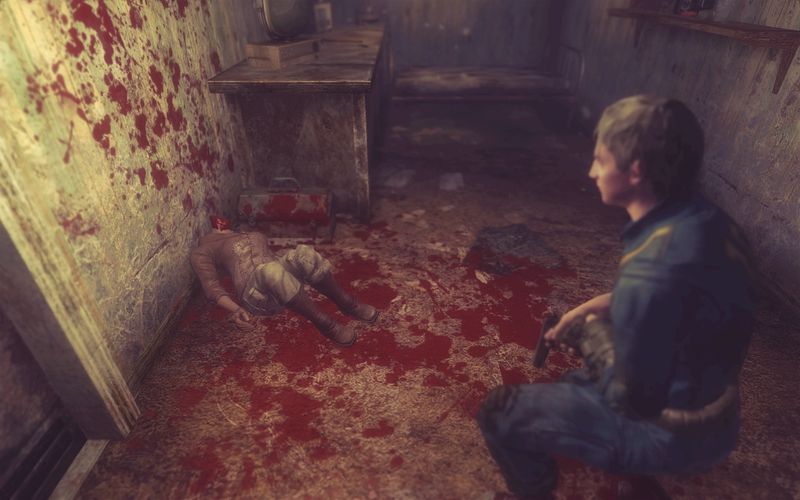 隔壁の前には、おそらく核戦争直後、このVaultへ遅すぎる避難にやって来た者たちの亡骸が、呪詛に満ちたプラカードとともに転がっていた。だが、そのことで感傷に浸る余裕はない。