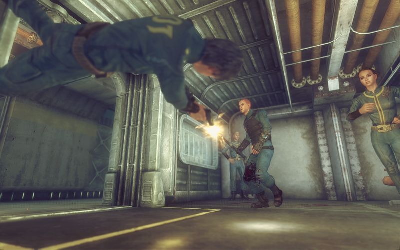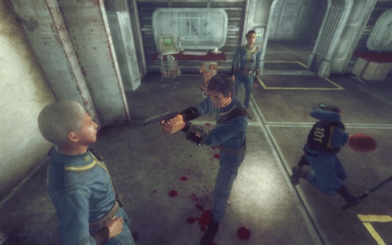 大声で叫ぶオフィサー・マック、一方で監督官はVault内製の10mmピストルを抜き…