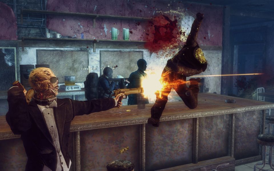 「俺たちはシエラ・マドレのカジノ強奪のために集められたんだ。ここに居るってことは、何も事情を知らないはずはないと思うが…ともかく、あんたには協力してもらわなくちゃならない。この首輪には爆薬が仕込まれてて、俺たちを嵌めた老人に逆らったり、あるいは誰か一人でも仲間が死ねば連鎖爆発を起こして全員死ぬ」