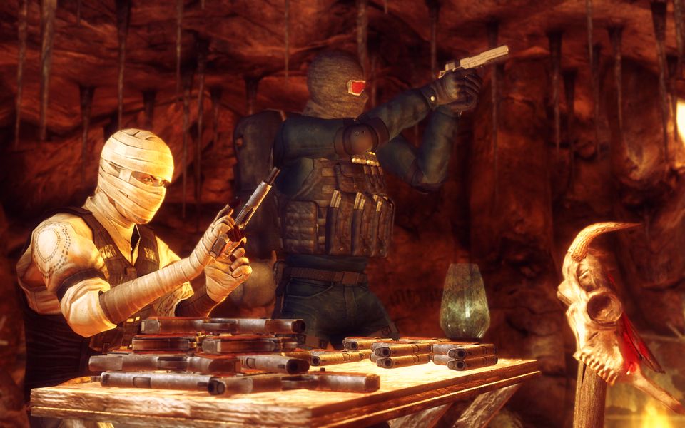 銃撃戦のさなか、両者おなじタイミングで弾切れを起こす。先に装填を終えたほうが勝つ!格闘戦に持ち込んだほうが早い、などと言ってはいけない。