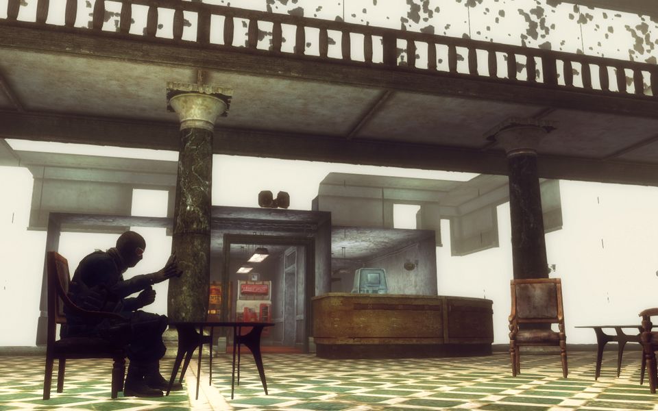 屋内を含む周辺はゲッコーの縄張りと化しており、いくらか荒らされた形跡はあるが、人の手が入った気配はない。戦前の物資がほぼそのまま残されていた。テーブルの上に残されたガラスのコップからは、生活痕さえ漂っている。