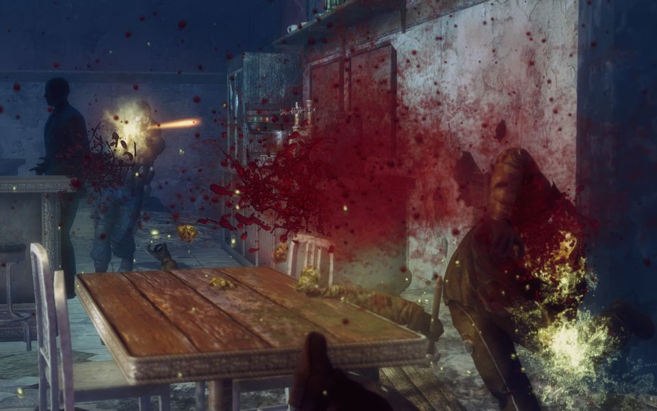 ご自身でも画面写真の撮影を行っている方は気づかれるかもしれませんが、今回は主にアクションシーンで通常は撮影できない画像が幾つか存在します。個性的なポーズからの発砲、同じ画面内にマズルフラッシュが複数存在する、トレーサーの数が多い、V.A.T.S.でもないのに弾頭が目視できる等々…