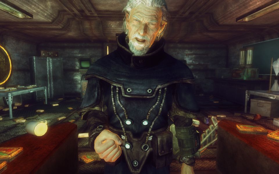 バニラでは種族Caucasian Old(HispanicOldAged)で作成されているエリヤですが、FOOKではFather Elijah(FookFatherElijahRACE)という専用種族で作成されており、ホログラム等で見られる肖像画により近い外観になっております。
