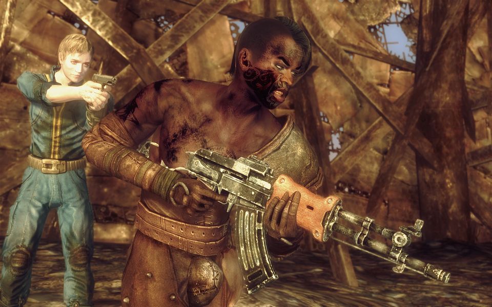 俺がメガトンに入ったとき、入り口の近く…俺の目の前、ちょうど俺に背を向けるようなかたちで、アサルトライフルをかまえているレイダーの姿が目に入る。