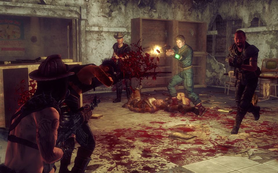 V.A.T.S.を起動しながら、銃撃戦が展開れている部屋に踏み込みレイダーに向けて発砲する。