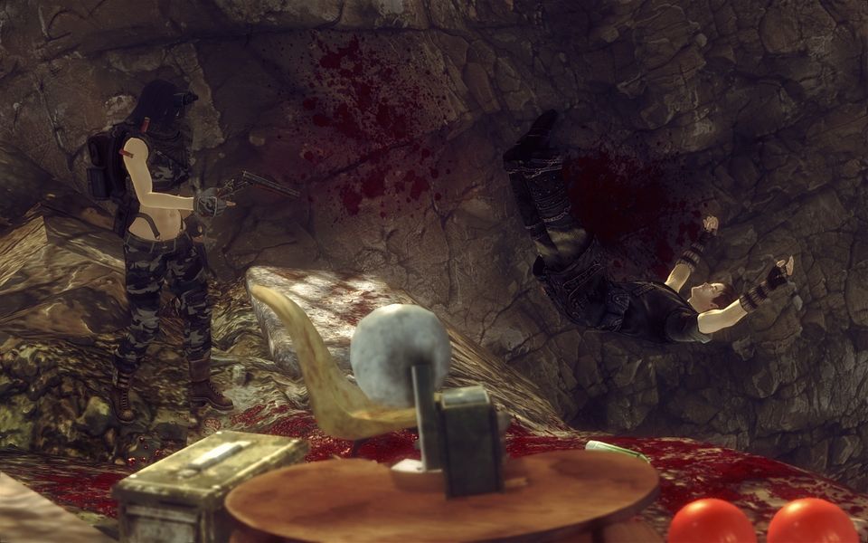 宙高く吹っ飛んだパウダーギャングの死体を眺めつつ、ブレンダは瓦礫を駆け下りて爆発現場に近づく。一発の弾丸でスコア2、悪くない結果だ。