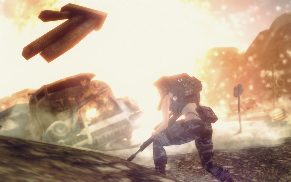 先のダイナマイトの衝撃によるものか、キャンプ近くに放置されていた廃車が突如大爆発を起こし、巨大な破片がブレンダの目前を横切る!