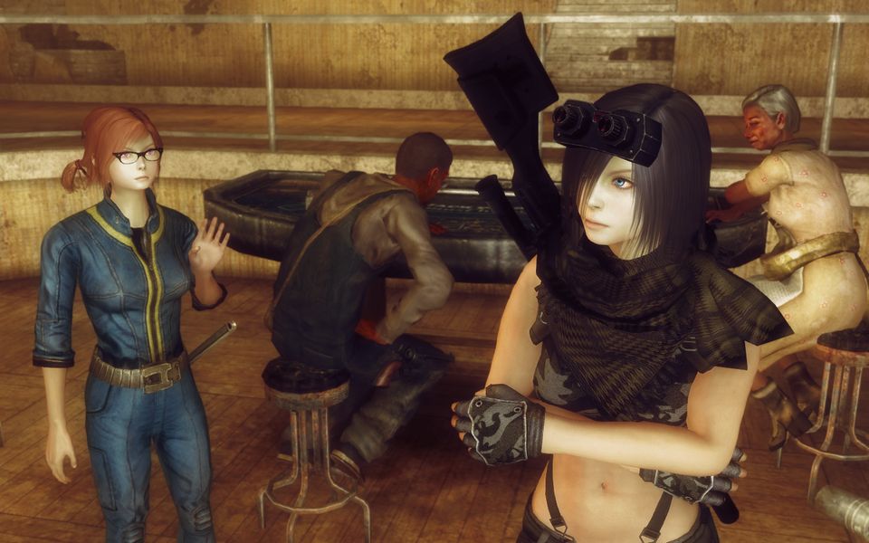 「彼女はヴォールトからの難民なんだよ。北の、ニューベガスに近いヴォールト3に住んでいたそうだ。そこは何年か前にレイダーの襲撃を受け、エックス・テックはなんとかしてここまで逃げ延びてきたらしい」