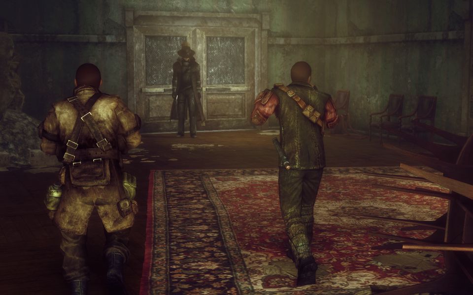 正面扉の前に、ギャングではない、謎の存在が佇んでいる。