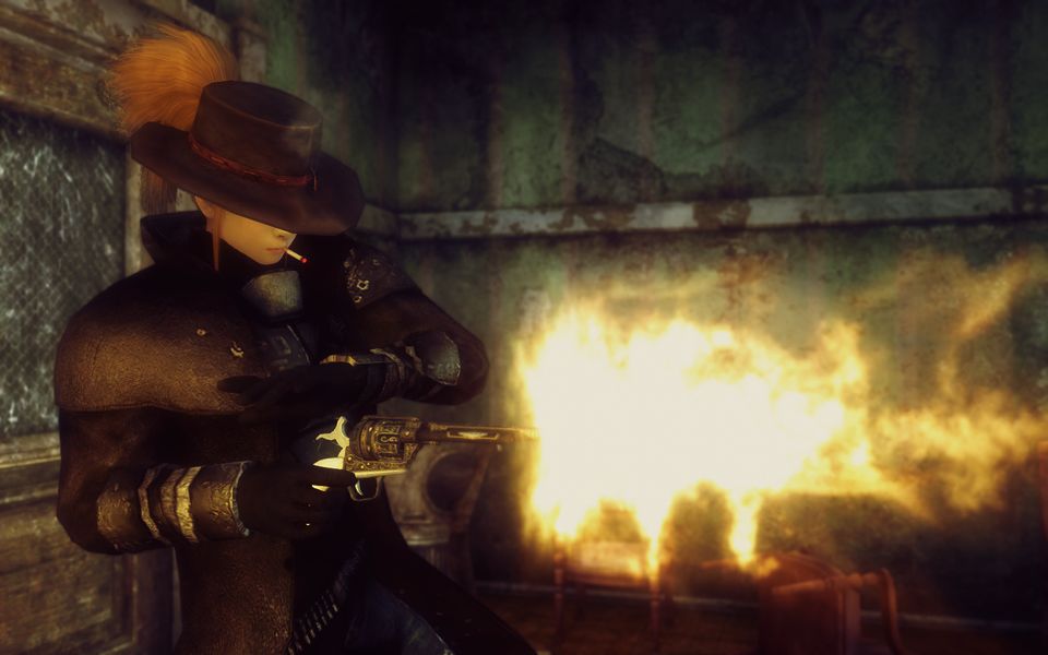 ガンマンのほうもブレンダに気づき、キリキリと音を立てて撃鉄をゆっくりハーフコック・ポジションへ戻すと、口から大量の紫煙を吐き出した。