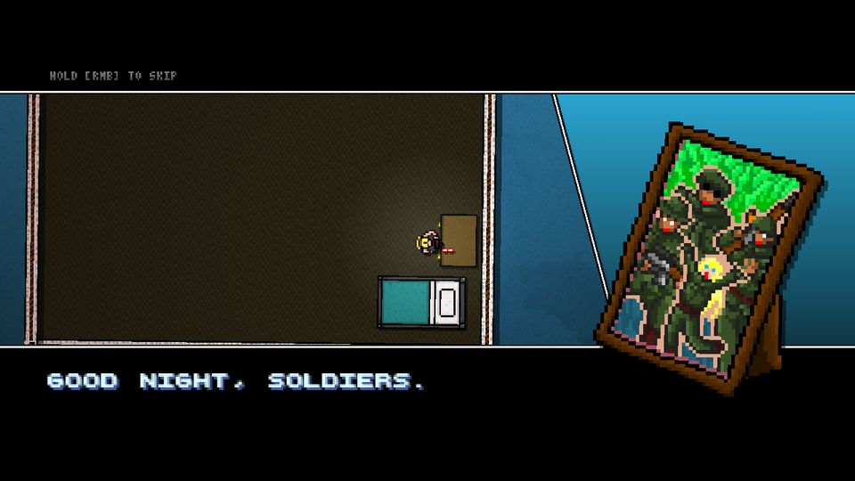 どうも、グレアムです。ここ数日ちまちまHotline Miami 2の自作キャンペーン用のスプライトを描いてました。イベント用のアニメーションとかダイアログ用の画像を。というかマップをッ!マップを作らねばならんというのに!