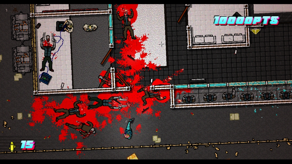 俺はレベルデザイン自体を凝るタイプではないので(ツクールでもシステム関連はほとんどいじったことがない)、どうしても見た目のインパクトで勝負してしまいたくなるんですよね。というか動作がバギーなシロモノが多いHotline Miami 2のユーザー製作レベルの中にあって、安定したプレイが可能であれば及第点はつけれるんじゃないかなという気がしている。