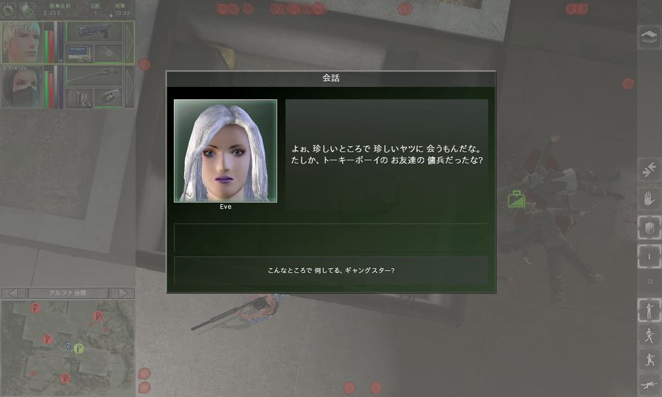 ストーリーの内容がほとんど憶測の垂れ流し状態になってるのは、そもそもゲーム本編で背景に関する情報がほとんど得られないからです(汗)見落としがちな点として、いちおうメールボックスにNSAからの依頼が届いてたりはするんですが、それでも本DLCのために書き下ろされたダイアログって10行あるかないかってところなんでは。これで"Delve deeper into the backstory of three of Jagged Alliance’s most popular characters"とか宣伝するのは詐欺だろ