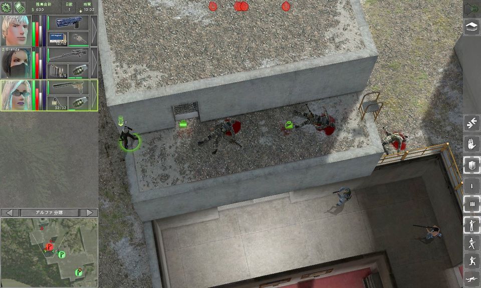 イヴがミサイルサイロからミサイルガンを制御室の窓に向けて連続で撃ち込む、と同時にクレイブがドアを開放。イヴに注意が向いている二人の敵兵を、クレイブとブレンダが各個撃破する。