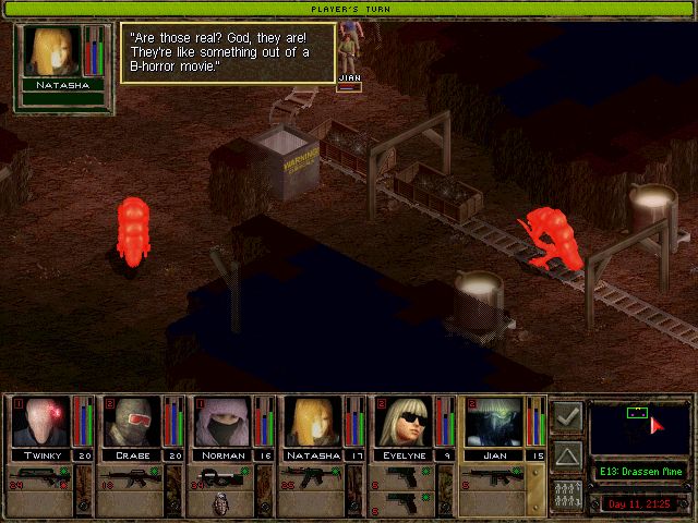 「とりあえず鉱山の中にいる連中はみんなやっつけたがよォー。このどでかい穴はなんだ、とびっきりでかくて臭ェクソが詰まってるって気がしねぇか?こんなの、いままで無かったよな」