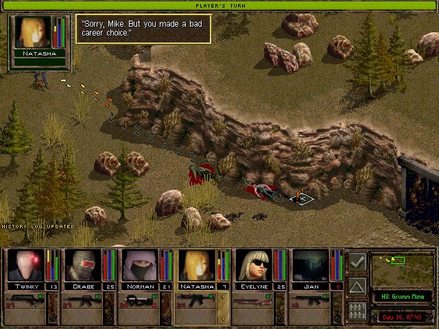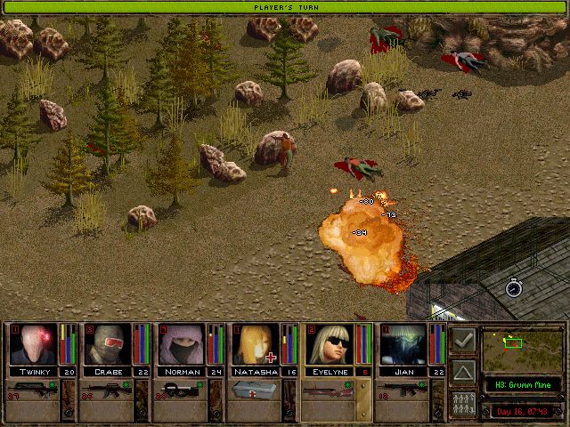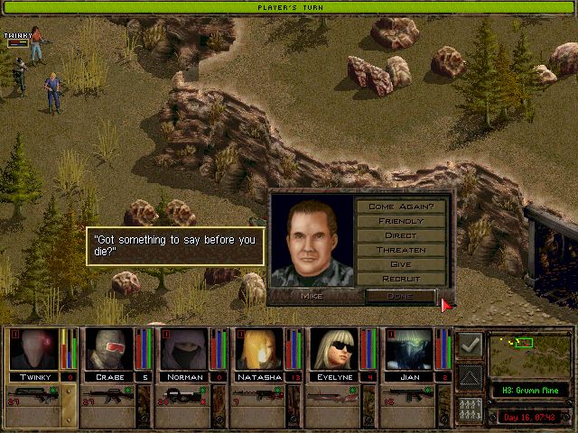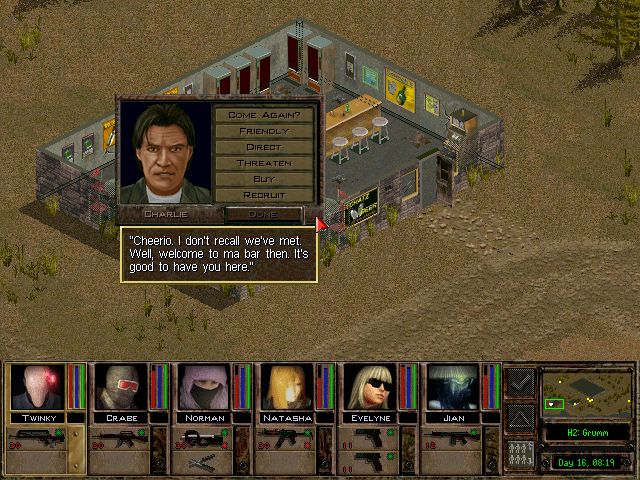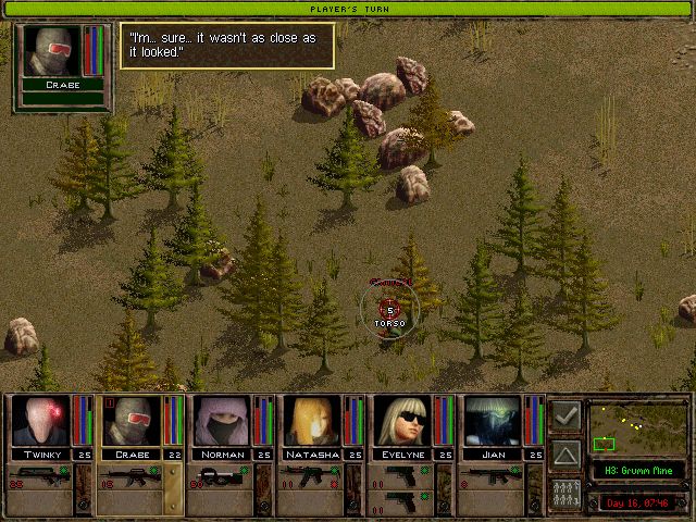 「俺が見てくる。にしても、夜襲なんぞ仕掛けなくて良かったよな。明かりがないから地形が把握できないし、ここの連中はよく訓練されてて装備も良い。たぶん夜戦装備も揃えてるだろう、ま、やたら画面の暗い2Dアイソメトリックでなけりゃあ、もう少しやりようもあるんだがな」