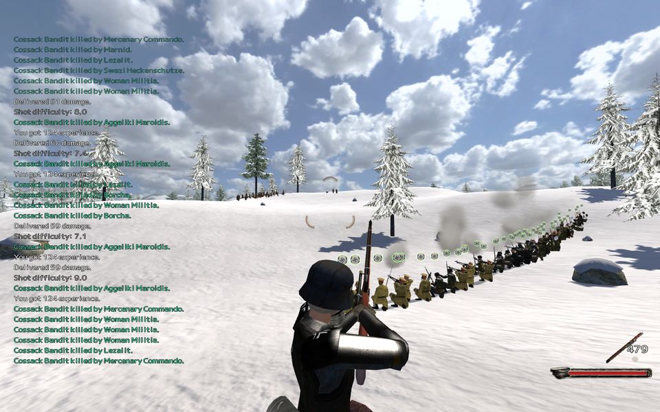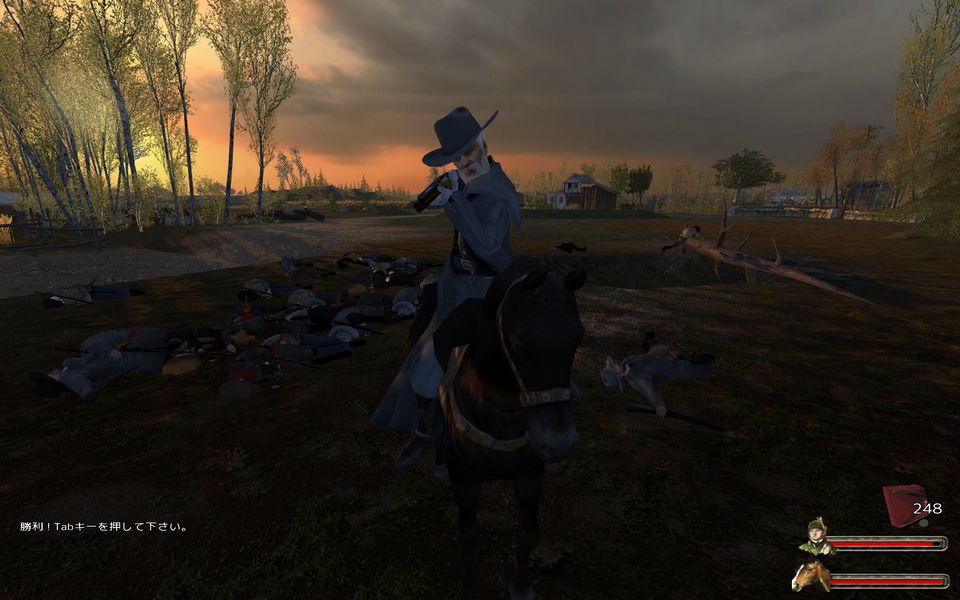 あと以前の記事で「馬に乗った状態だとカメラ視点がおかしくなりマトモに狙えない」と書いたが、今回たまたま戦闘中に馬に乗ってみたらカメラ視点が普通に治っていた。アルェー?