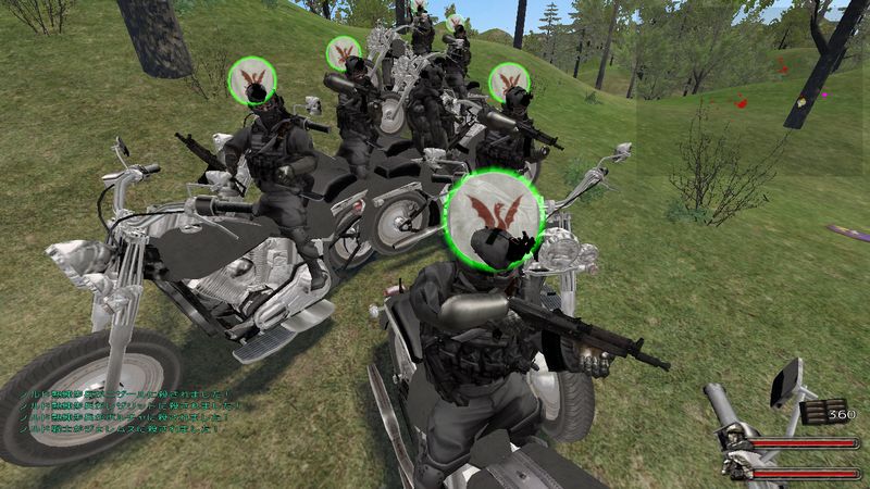 Call to Armsの改造は、えーと、これはBattlefield ModやThe Reckoningからメッシュを移植したものです。スクリプトとかアニメーションには手をつけてないので、バイクはこれ内部的には馬そのもので、実ゲームプレイではパカラパカラ音を鳴らしてヒヒーンと嘶きます。