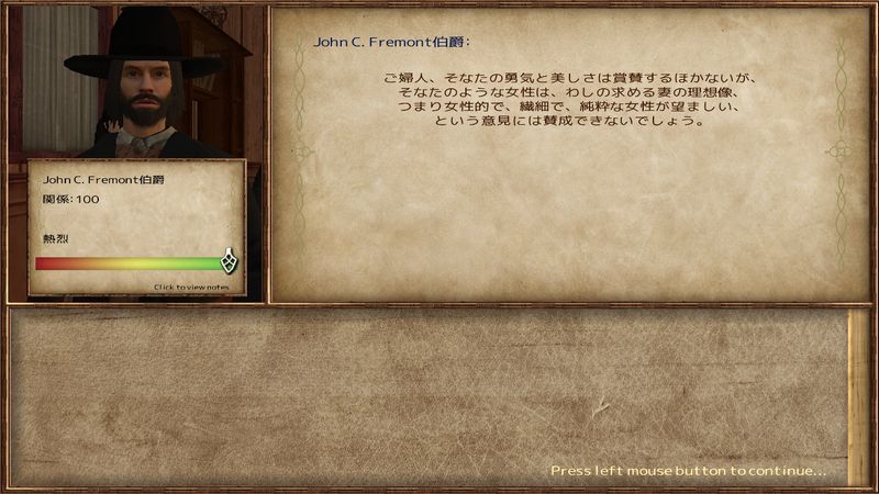 以後、あまりの非モテぶりに心がやさぐれ、(街との友好度を上げるため)諸国を巡って酒場でワインを振る舞う日々を送るようになりましたが、メキシコ共和国を過ぎてメキシコ第二帝政の支配地域に入ったあたりで状況が変化。