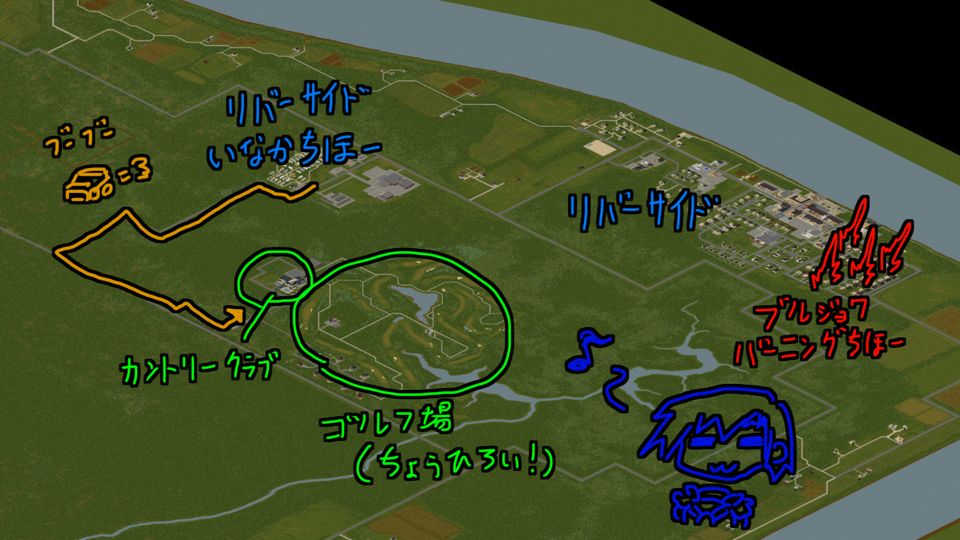 リバーサイドを脱出し、いざローズウッドへ…!の前に、リバーサイド南にあるゴルフ場へ向かいましょう。観光案内(=マップ紹介)でも言及されていることですし。