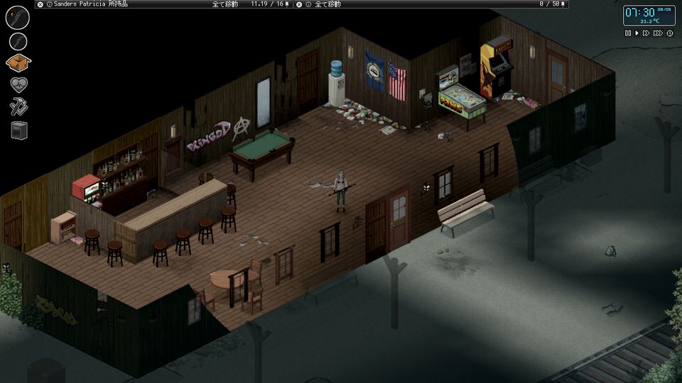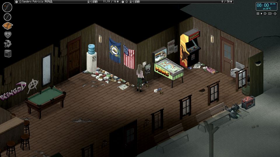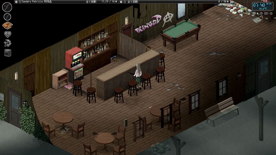 でもってビリヤード台にピンボールマシン、アーケード筐体と遊戯施設も充実。いかにも不良の溜まり場っぽい雰囲気が気に入ってます。そういえば、Zomboidに両替器ってあるのかな?