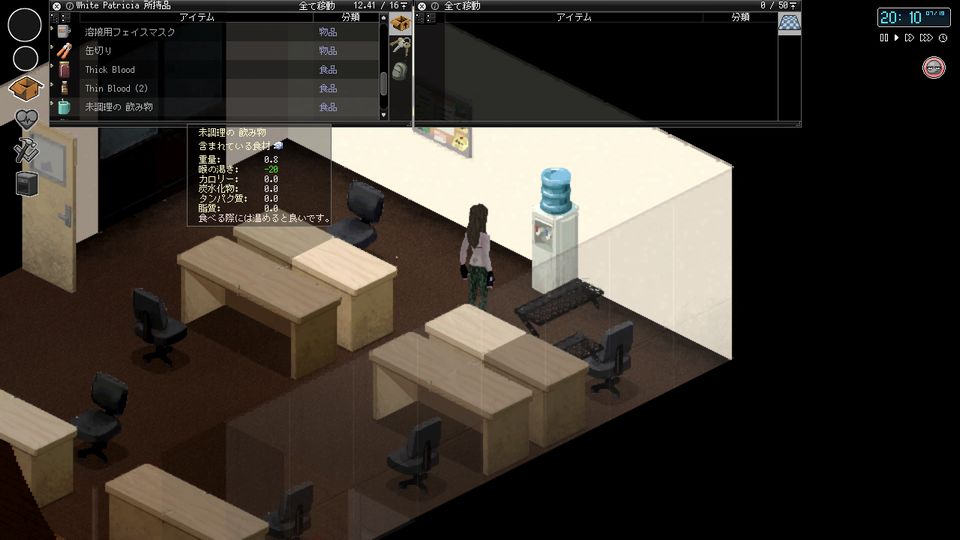 Zomboidでは水を注いだマグカップに紅茶のティーバッグやコーヒーを加え、そこに砂糖などを加えて調味することができる。しかしながら、まさかただの水の状態でも砂糖を加えることができるなどとは思いもよらなかった。