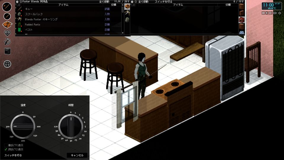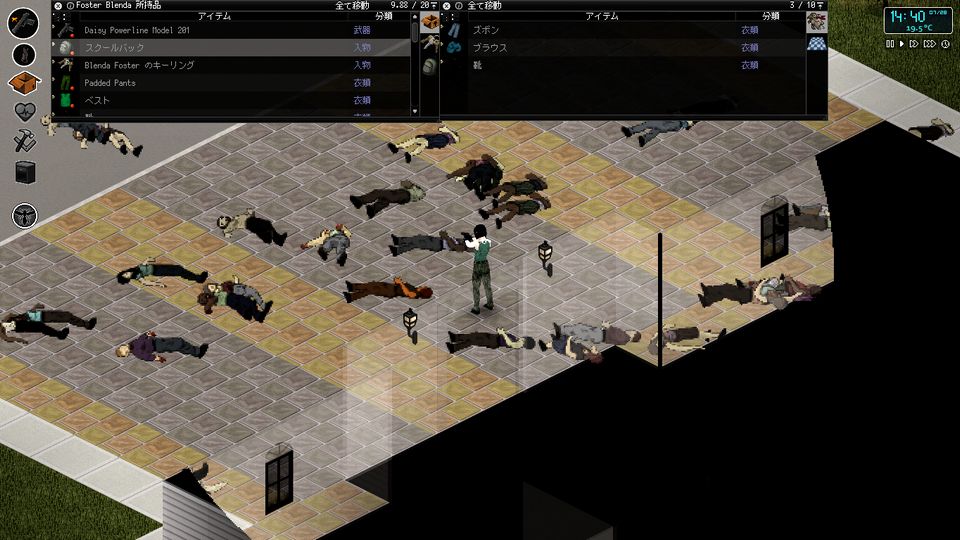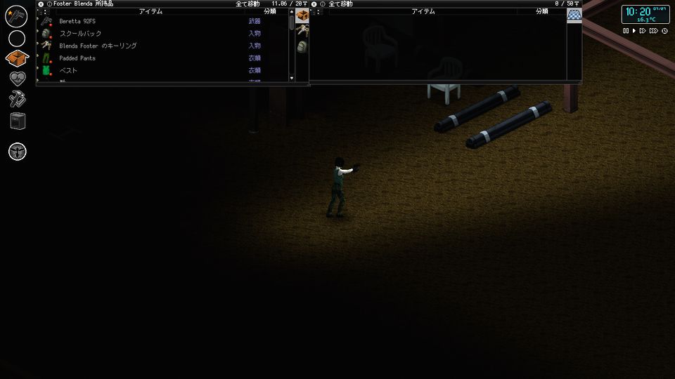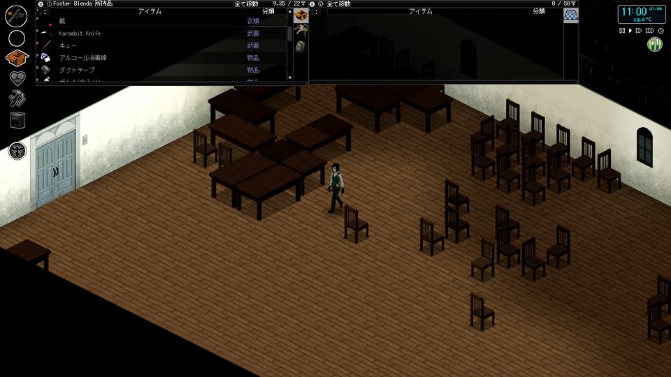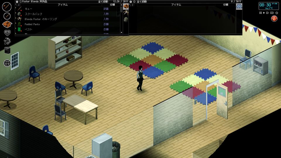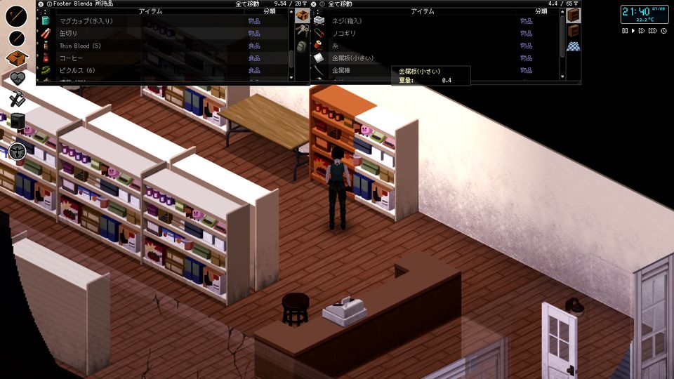 たとえばCataclysm: DDAでは金庫からレアアイテム発見が期待できるのですが、Zomboidでは本当に行く価値のない施設です。いちおう施錠されたドアをスレッジハンマーで破壊し侵入してみますが、金目の物どころかアイテムそのものがまったく見つかりません。せめて札束でもあればモヒカンごっこや成金ごっこで楽しめるのですが。