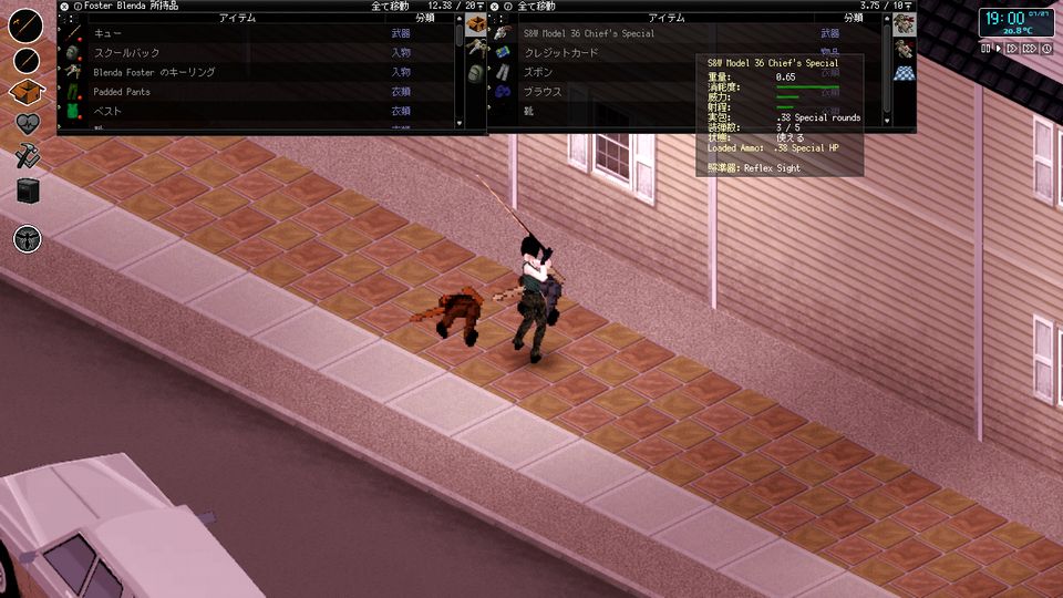 外周でふらふらしているゾンビたちを倒し、M36チーフススペシャルをゲット。スナッブノーズはいいですよね。見たところステンレスモデルっぽいので、実際はM60?銃身長は1.875inch。ただし.38splは弾の持ち合わせがないので、現状はバックパックの肥やしとなります。