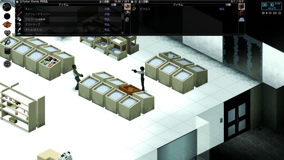 どうやらここは食料品専門のマーケットらしく、腐った食料品はすぐ消滅する設定にしているせいか生鮮食品の棚はガラガラでした。唯一腐らないピクルスだけがやたらに残されており、あたかもピクルス嫌いの略奪団が通過した後という風情です。この店、ピクルスしかねぇぞ!