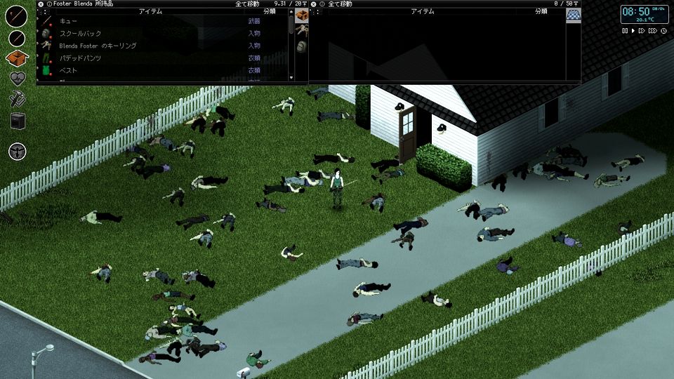 わらわらと集まってきた感染者を倒していたら、最終的に死体が100体ほど積みあがっていました。アイテムの確認や死体の処理等で一日が終わります。