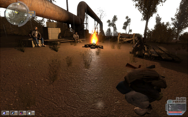 Zatonの野営地、Banditと。手前のやつがシグルイのちゅぱ衛門みたいな体勢になってるが大丈夫か。Zoneではたびたびこうした奇行が見られる。