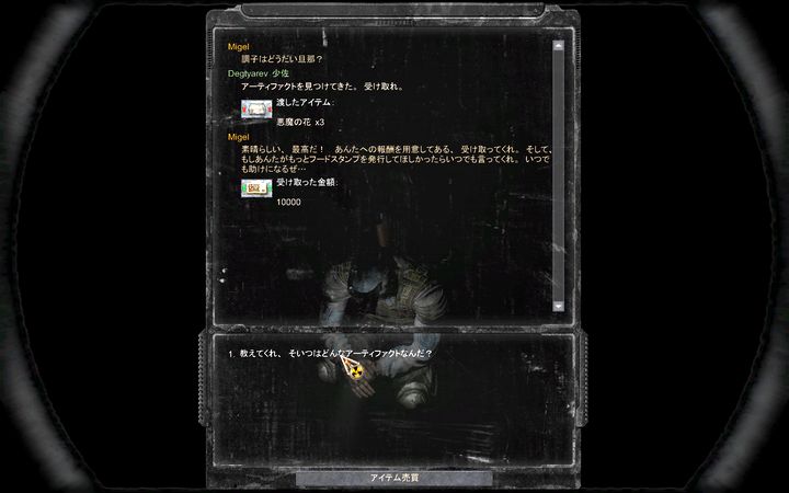 報酬は10000RuにMigelのMedic能力解禁とえらく微妙。だいいちYanov駅から近いうえ、Clear Skyの拠点近辺はほとんど立ち寄ることもないので利用価値がほとんどまったくないんである。