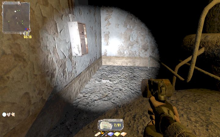 肝心のDecoderはBurerの死体からではなく、梯子を下りて行ける地下(青い箱がある場所)の一室に無造作に置かれている。