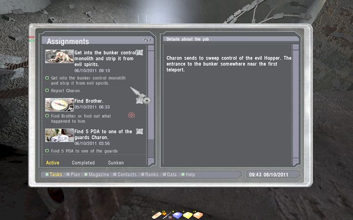 ちなみにCharon以外のMonolith兵からもサブタスクを請け負うことができ、それぞれレーションを5つ持って来いとか、PDA(NPCの死体から稀に入手できる)を5個持って来いとか言われる。