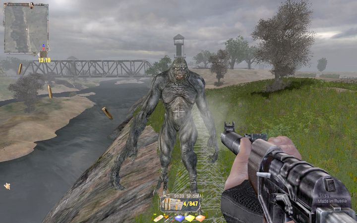 MAPに示されたあたりに到着すると、小屋の中にミュータントの影が。近づいてみると…こいつはいままでに見たことのないタイプだ。もしやMETRO2033に登場したライブラリアンか!?