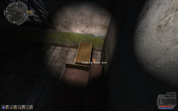 しかもBasic Toolが置いてあるのは東側建物二階の棚の裏、普通に探したら絶対に見つかりそうにない場所である。ひょっとしたら配置にランダム性があるかもしれないので断言は避けるが、ちょっとこれはないんじゃないか。