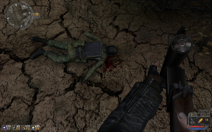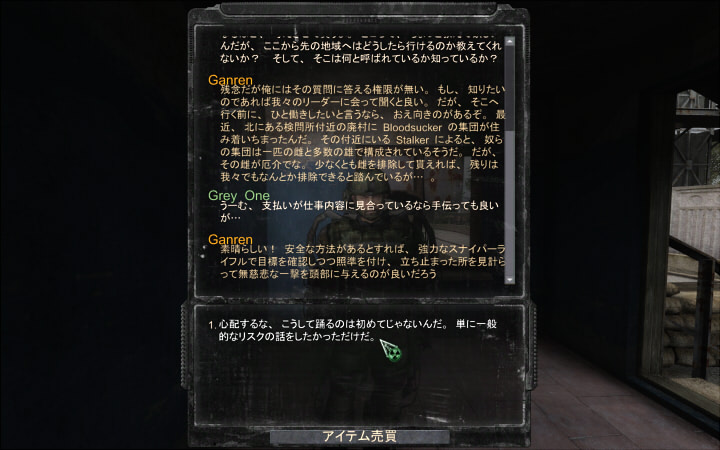 YanterのMedicは所持金が少ないため、ほとんど金策の役には立たない。西側武器を見つけたらいちいちCordonに取って返さなければならないが、そもそもCordonのStalkerキャンプにいるMedicもそれほど手持ちが多くないことに気づく。以前プレイしたロシア語版では無制限だったような…気のせいか?