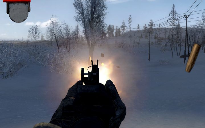 WoDUは環境系にかなり力を入れており、雪原に着弾すると雪が散ったり、発砲後に銃身が過熱して周囲の空気が歪むなど、雰囲気作りに腐心しているのがよくわかる。ただ、この放熱エフェクトが戦闘時のFPS低下に拍車をかけているような…それとこのエフェクト、どうもMetro2033のソレによく似ている気がするのだが、気のせいだろうか?あのゲームのデータって、S.T.A.L.K.E.R.のMODにマージされてることが多いんでつい邪推してしまう。そもそも4A Games自体が元GSCメンバーで構成されていることもあり、まさかデータに互換性があるなんてことはないだろうが。