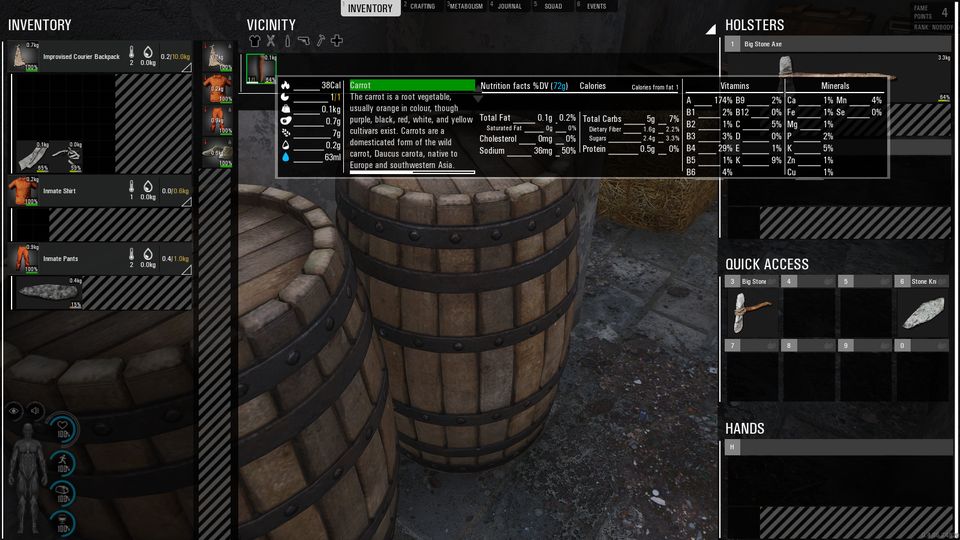 それと、一定期間のプレイを過ぎるとカロリー表記がおかしくなる気が…いまのところMetabolismシステムは完璧に機能しているとは言い難く、あんまりシリアスに突き詰めてプレイするには向かないと思います。
